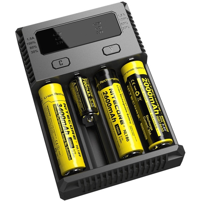 With a maximum output of 1500mAh, the New i4 Intellicharger from Nitecore charges twice as fast as its predecessor, the 750mAh original i4. It accepts commonly used battery sizes and chemistries, including 20700 and 21700 cells, recharging quickly and safely.